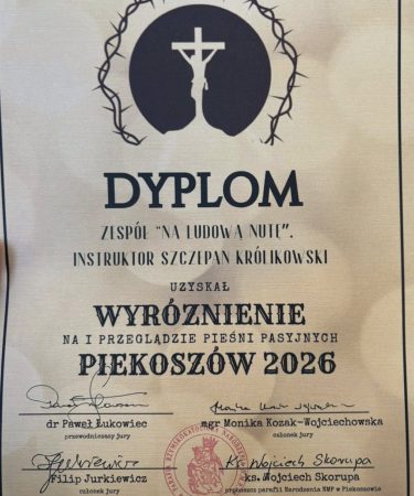 Z ogromną dumą informujemy, że nasz zespół „Na ludową Nutę” zdobył wyróżnienie podczas I Przeglądu Pieśni Pasyjnej w Piekoszowie! To …