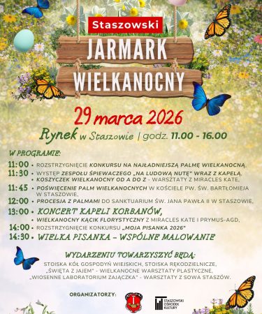 Już w niedzielę, 29 marca 2026 roku, Rynek w Staszowie wypełni się świąteczną atmosferą. W godzinach 11:00–16:00 zapraszamy mieszkańców oraz …