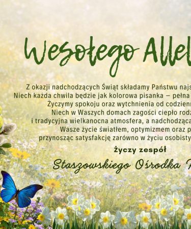 Radosnych Świąt Wielkanocnych, wiosny pełnej słońca, nadziei i pomyślności dla Was i Waszych bliskich życzy zespół Staszowskiego Ośrodka Kultury …