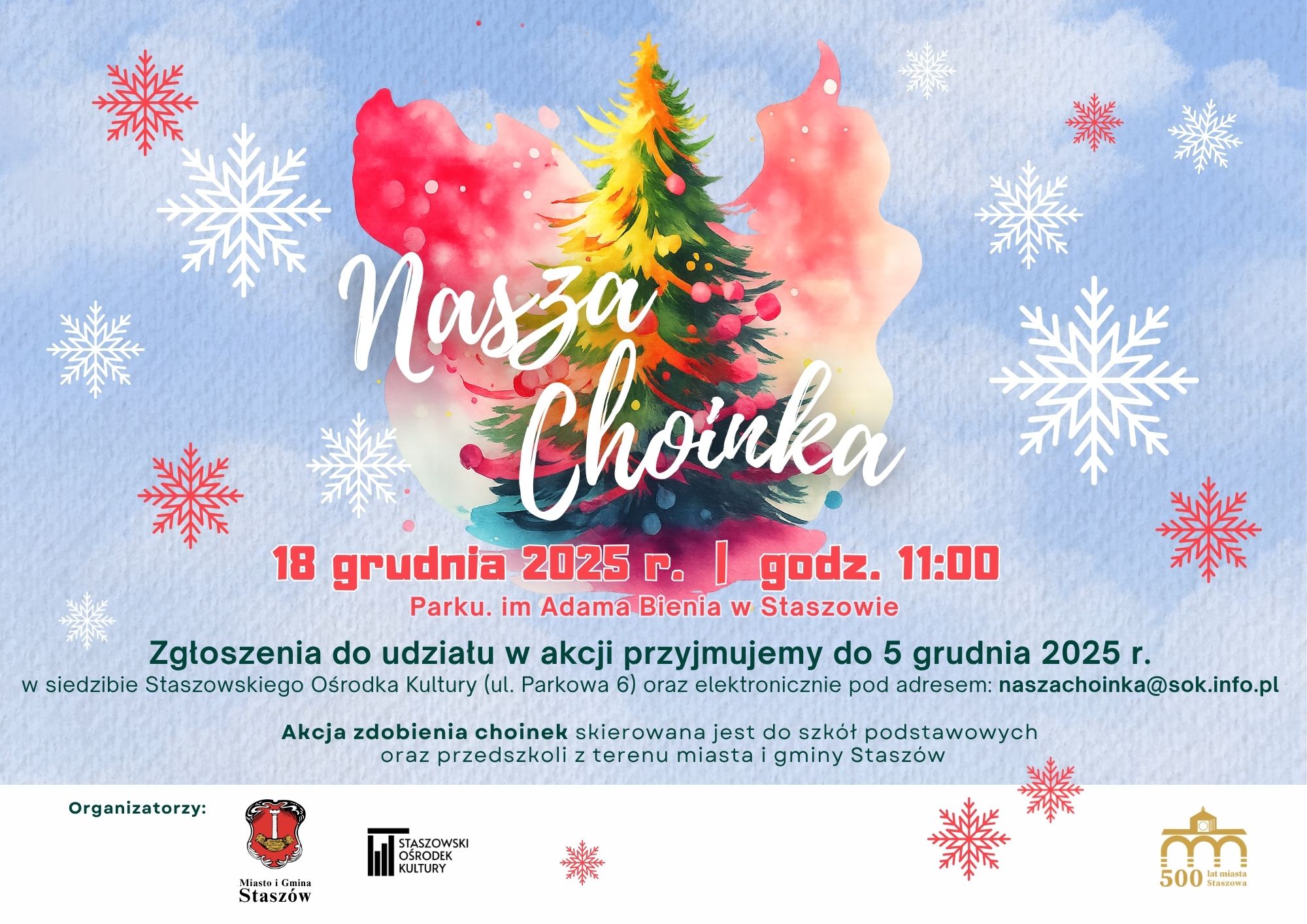 Zapraszamy grupy przedszkolne i szkolne z terenu miasta i gminy Staszów do wzięcia udziału w świątecznej akcji zdobienia choinek. To świetna okazja, aby wspólnie poczuć magię Świąt Bożego Narodzenia oraz spędzić czas w radosnej i kreatywnej atmosferze. Aby dołączyć, wystarczy: 📅 Termin nadsyłania zgłoszeń: do 5 grudnia Zgłoszenia można przesyłać elektronicznie na adres: naszachoinka@sok.info.pl lub dostarczyć …