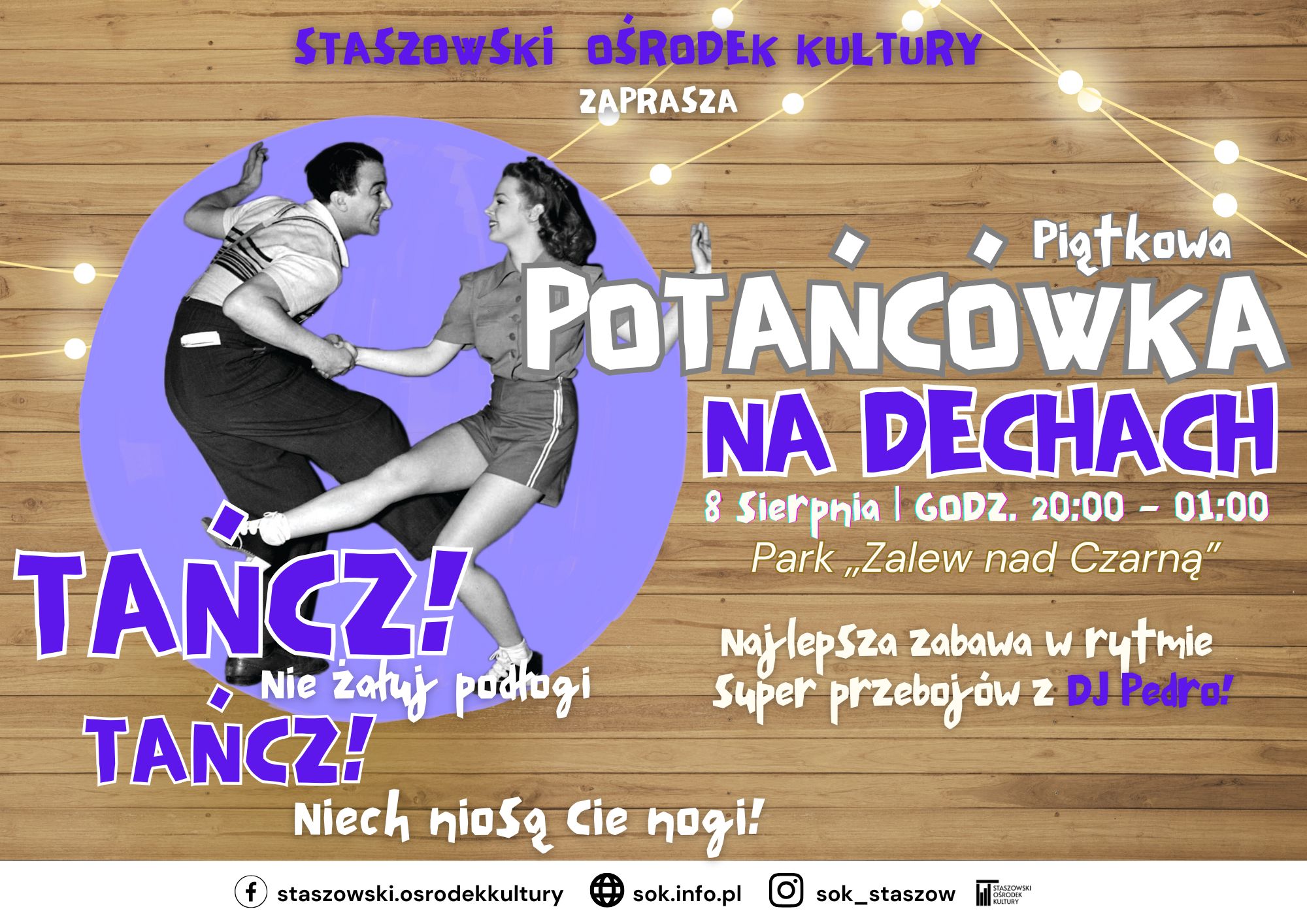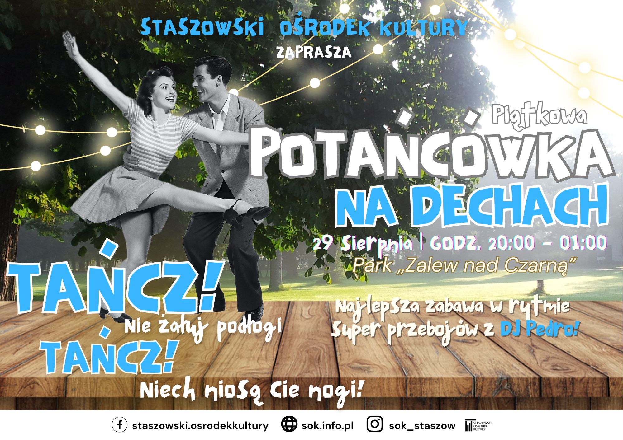 Już w najbliższy piątek Potańcówka na Dechach ponownie rozgrzeje Park ,,Zalew nad Czarną” do czerwoności. Przy konsolecie niezawodny DJ Pedro, który dostarczy Wam solidną dawkę letnich hitów. Gdzie? Zalew nad Czarną Kiedy? Piątek, 8 sierpnia, godz. 20:00–01:00 Jeśli byłeś na poprzednich potańcówkach – wiesz, że to czysta energia. Jeśli jeszcze nie byłeś – czas to …
