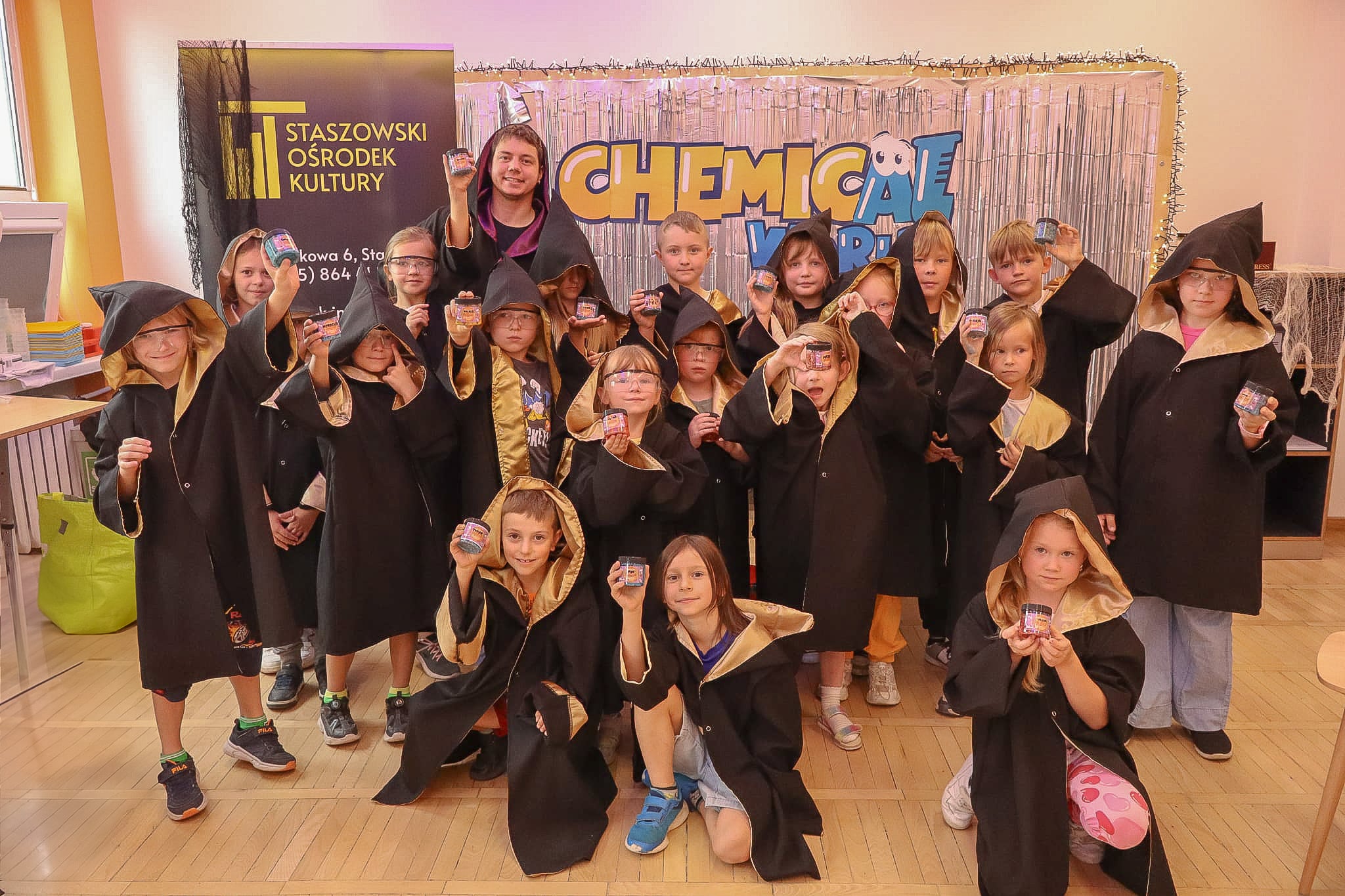 Zamiast podręczników – pipety i eliksiry 18 lipca dzieci eksperymentowały, uczyły się i tworzyły w ”Krainie Magii i Alchemii”. Podczas naszych warsztatów uczestnicy wkroczyli do świata fascynującej nauki i kolorowych eksperymentów. Warsztatowicze – odziani w długie, czarodziejskie szaty – wcielili się w role młodych alchemików, gotowych odkrywać tajemnice chemicznych reakcji. Każdy miał swój własny kociołek …