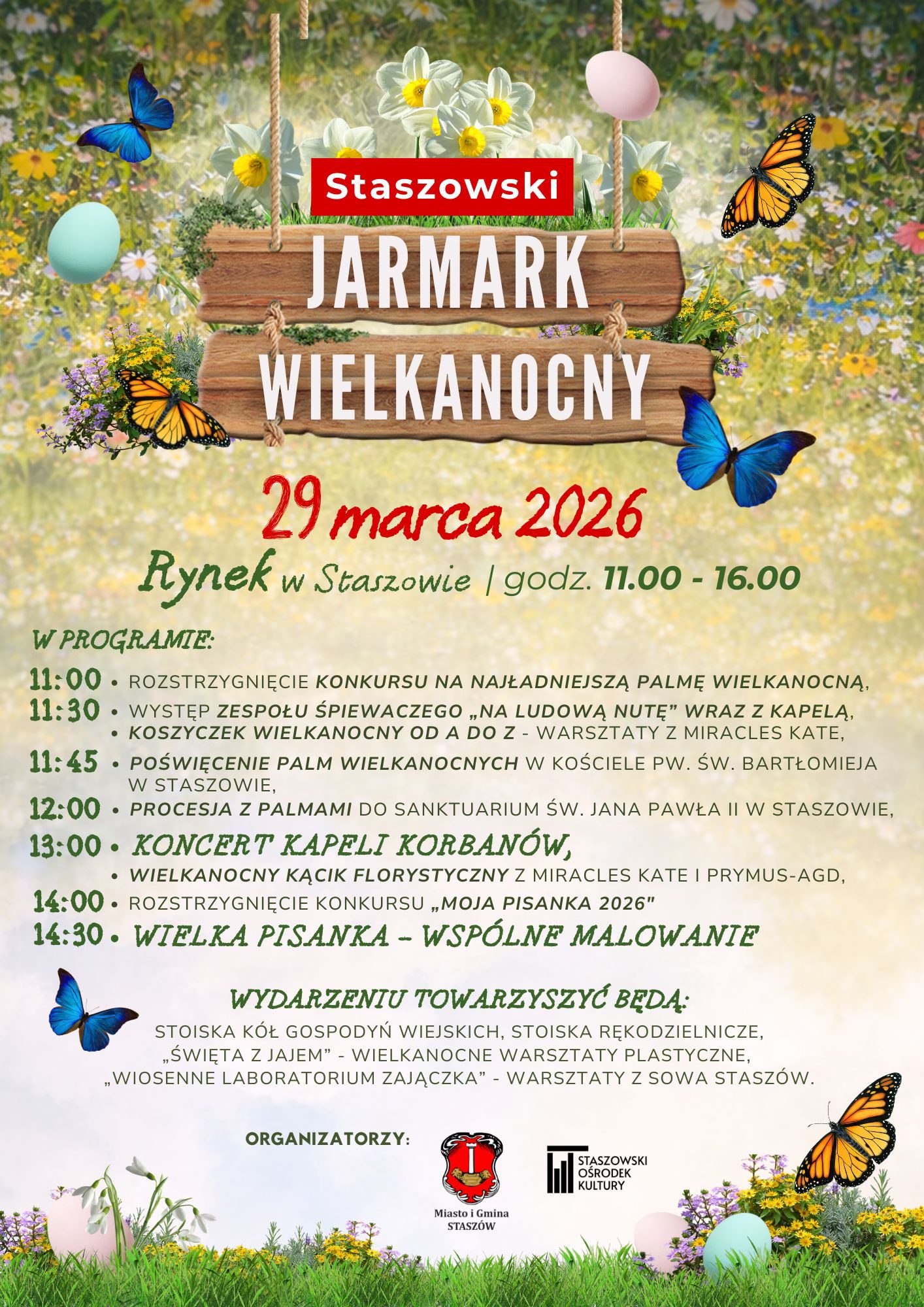 Podczas jarmarku dostępne będą również stoiska rękodzielnicze i regionalne, a dla najmłodszych przygotowano liczne atrakcje i warsztaty inspirowane tradycją świąt wielkanocnych.